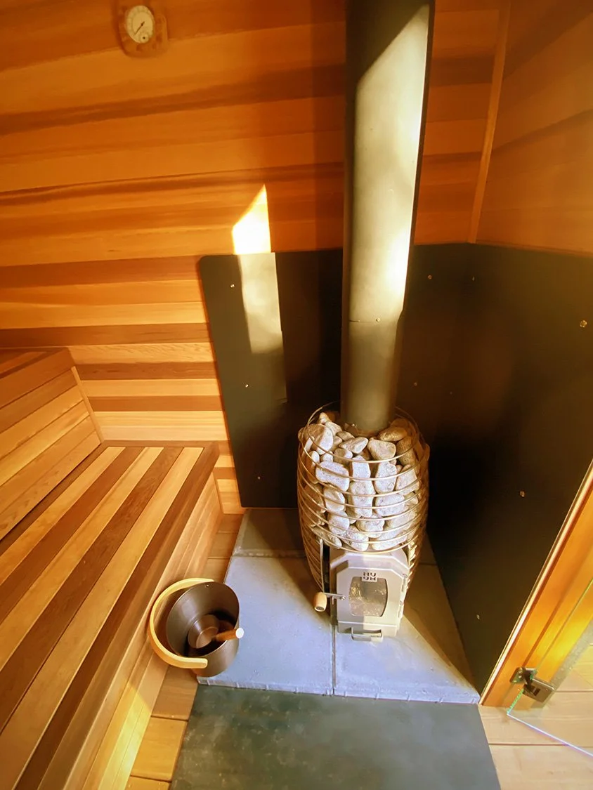 Because stove sizes and required fire safety clearances vary, the heater must be selected before construction begins. We’re flexible on stove type or brand, provided it’s a safe and appropriate match for the sauna’s size and layout.